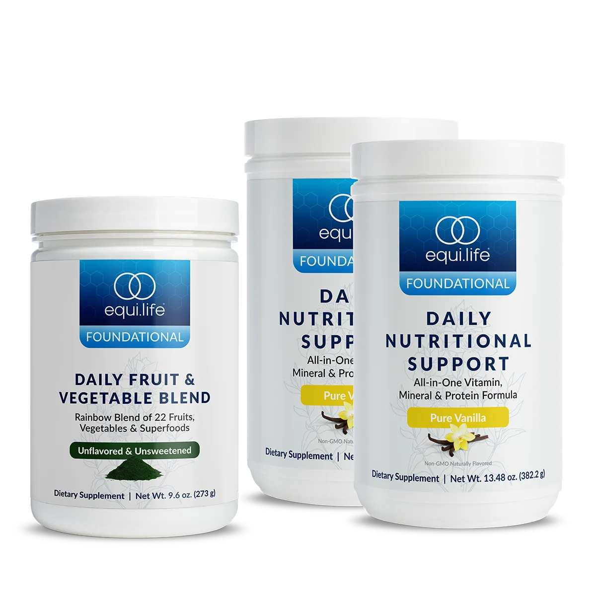 Combining the power of Daily Nutritional Support with the added antioxidant benefits of our Daily Fruit & Vegetable blend, this bundle is an excellent way to enhance your morning routine. With modern diets lacking in many major vitamins, minerals, and fruit and vegetable fiber, we've crafted a simple method of supplementing your diet with the highest quality supplements in an easy protein shake.